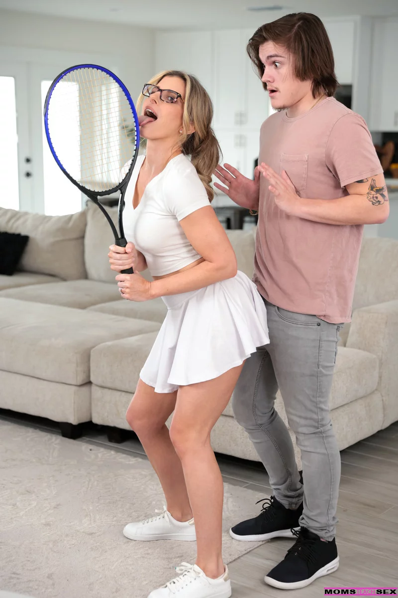 Белокурая леди Кори Чейз занимается сексом со своим пасынком в своем теннисном костюме
