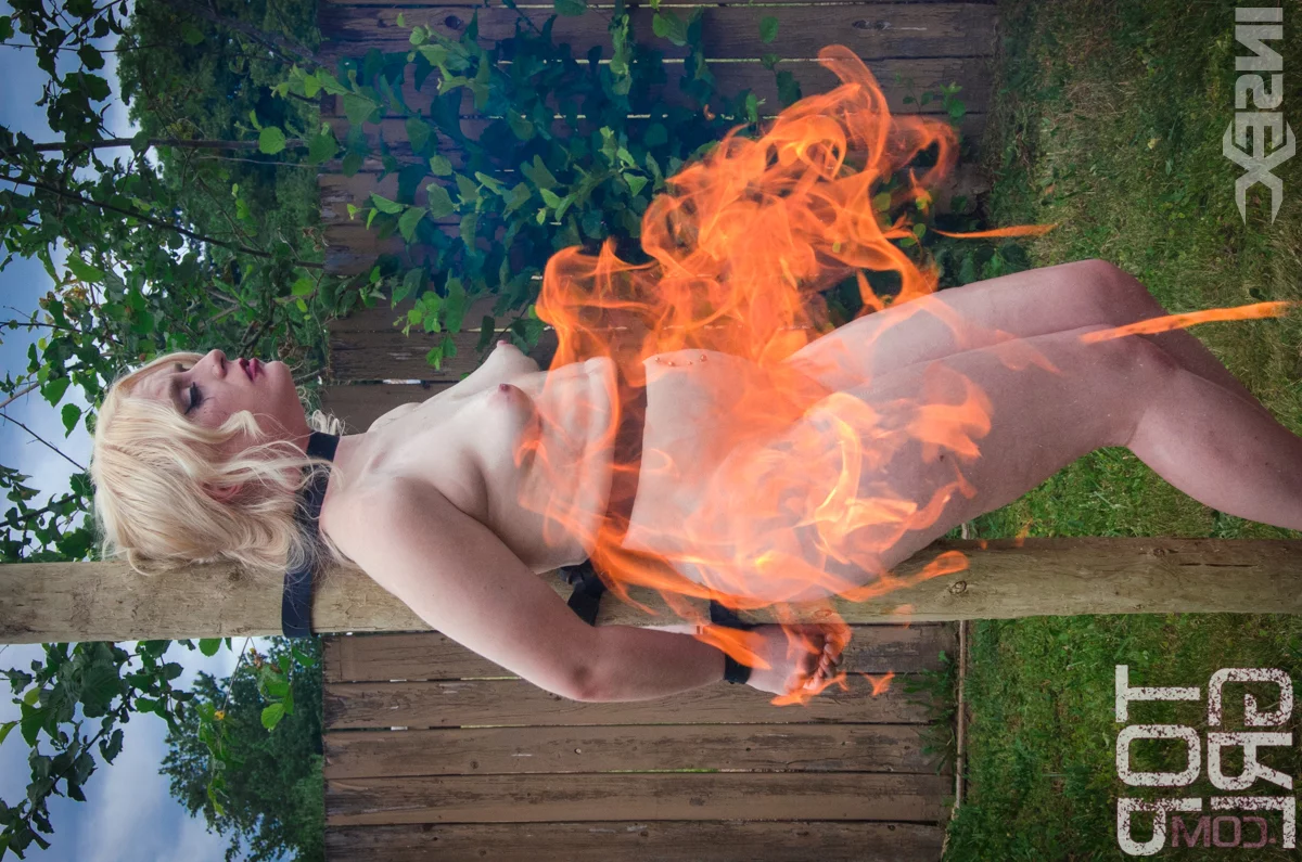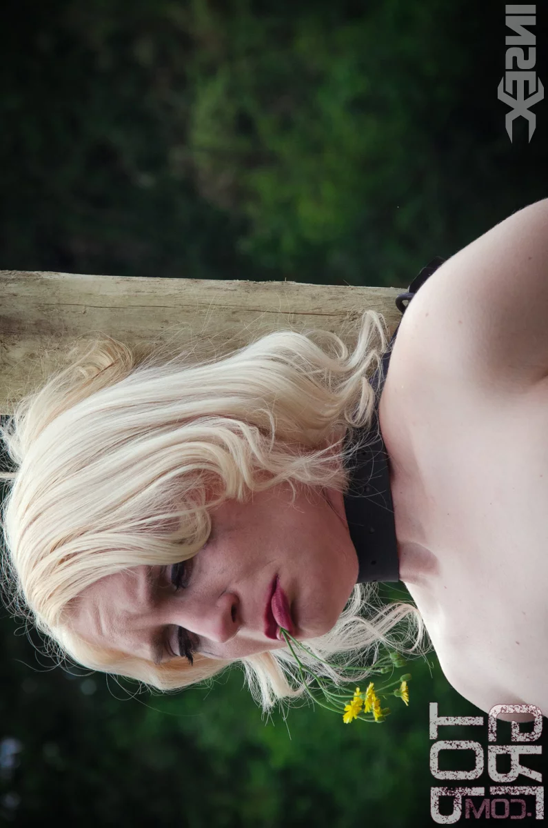 Белокурая рабыня, привязанная к столбу для грубых анальных игр своей госпожой-лесбиянкой