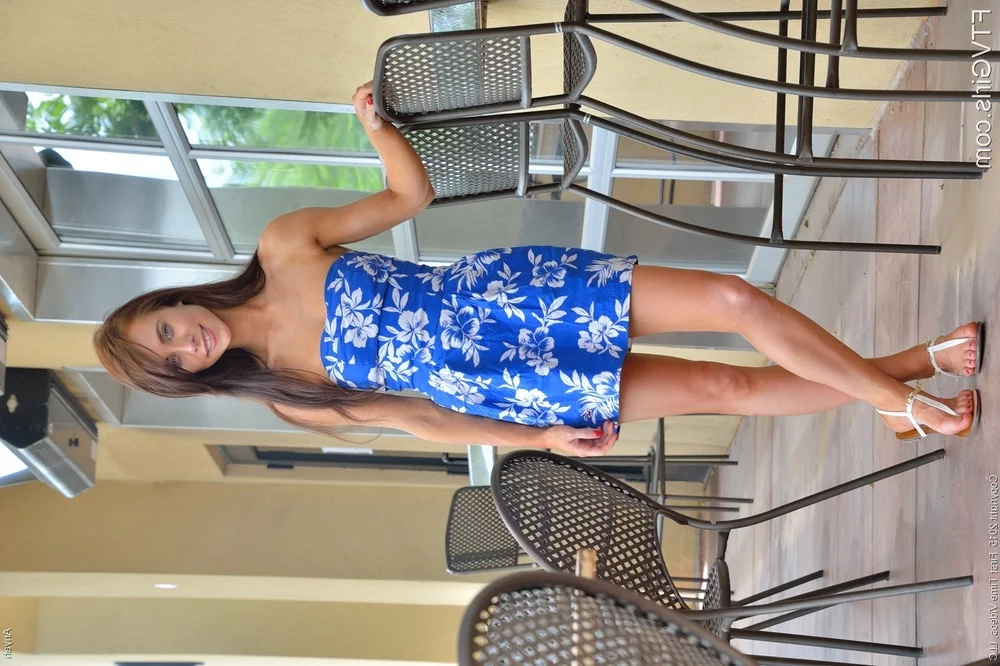 Брюнетка раздевается на открытом воздухе, растягивая тугую киску для горячего проникновения