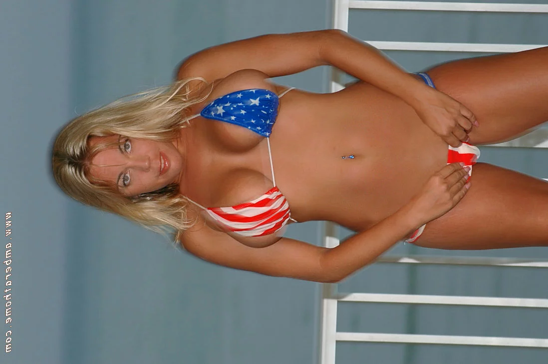 Грудастая блондинка-любительница Эмбер Линн Бах (Amber Lynn Bach) стягивает трусики бикини на балконе