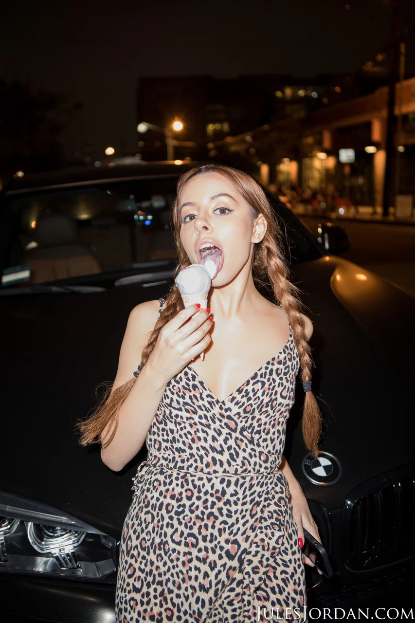 Молодая рыжеволосая Ванна Бардо ест мороженое перед межрасовым сексом