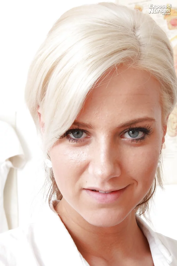 Пышногрудая медсестра засовывает в свою пизду пальцы и зеркало