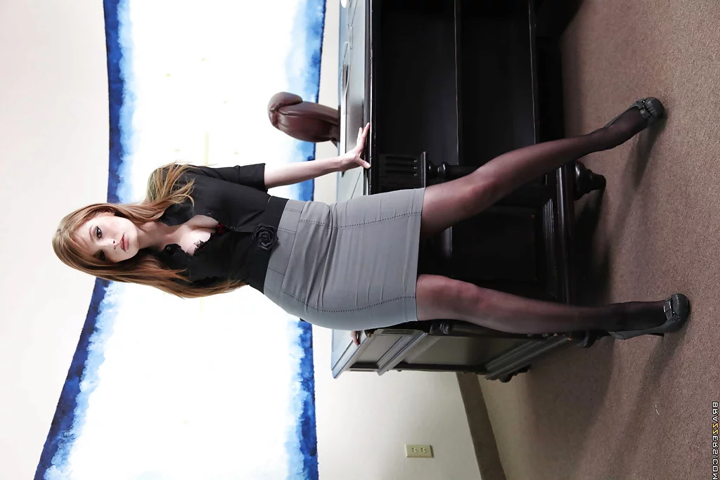 Рыжеволосая милфа Фэй Рейган ублажает себя в офисе