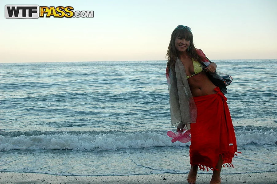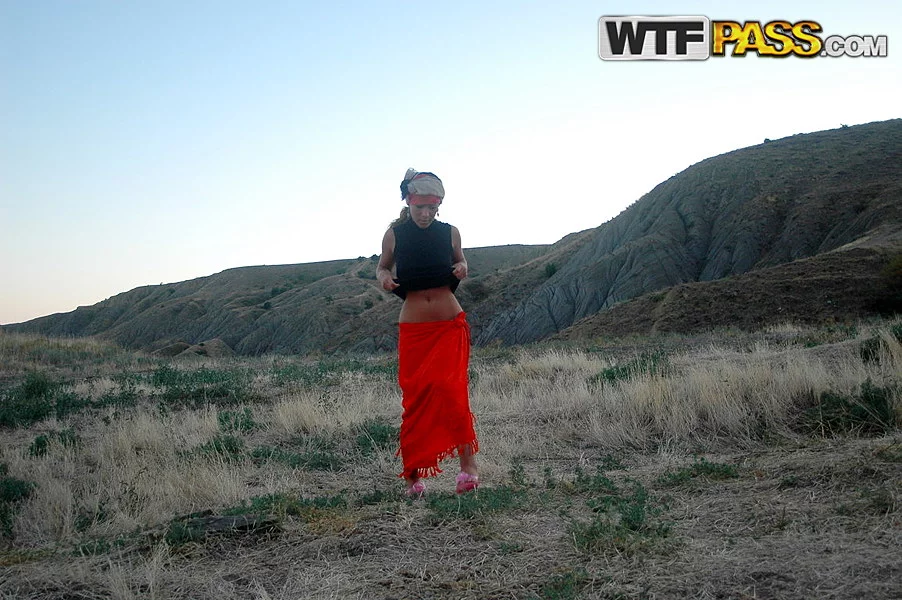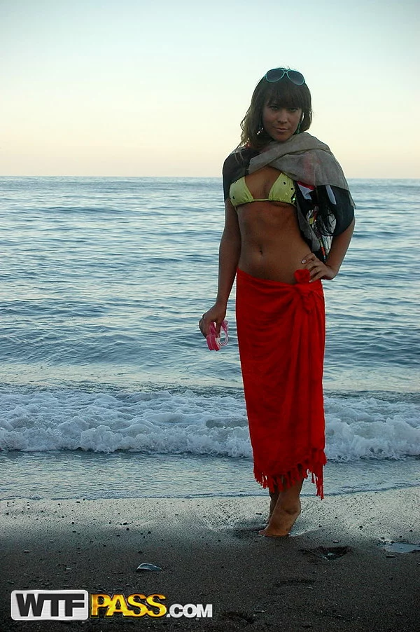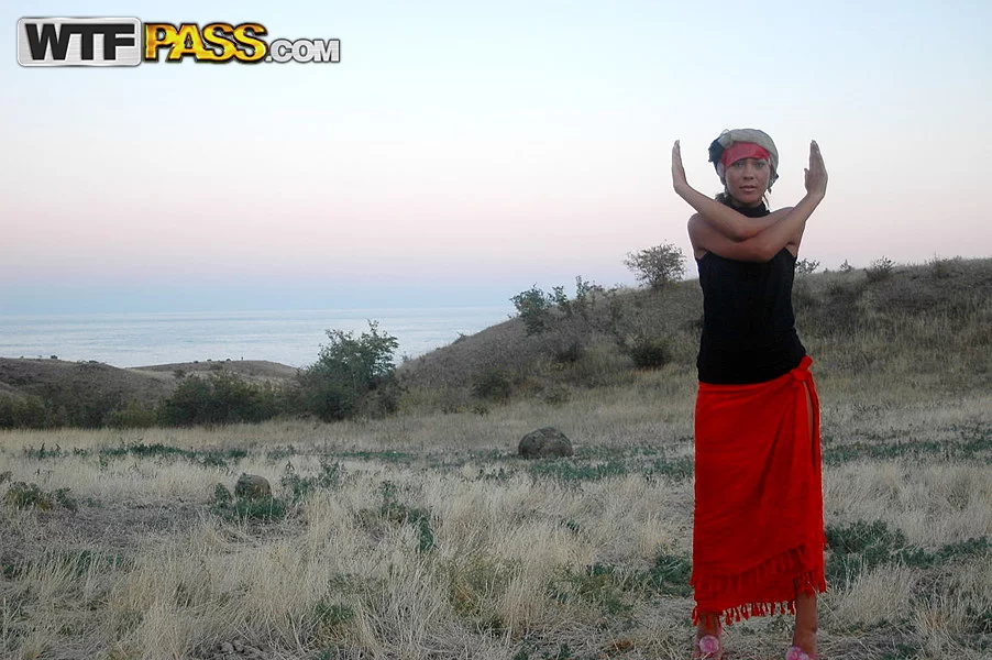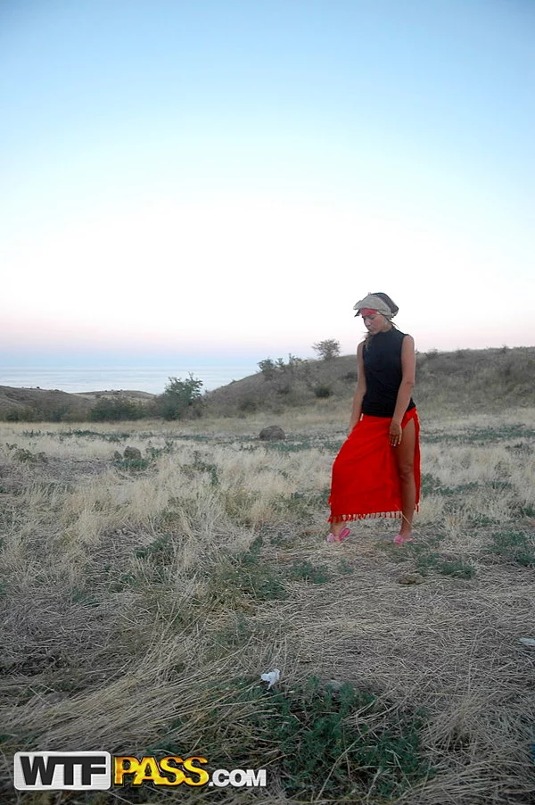 Симпатичная девушка Даша обнажает свое нижнее белье под юбкой во время морского действа
