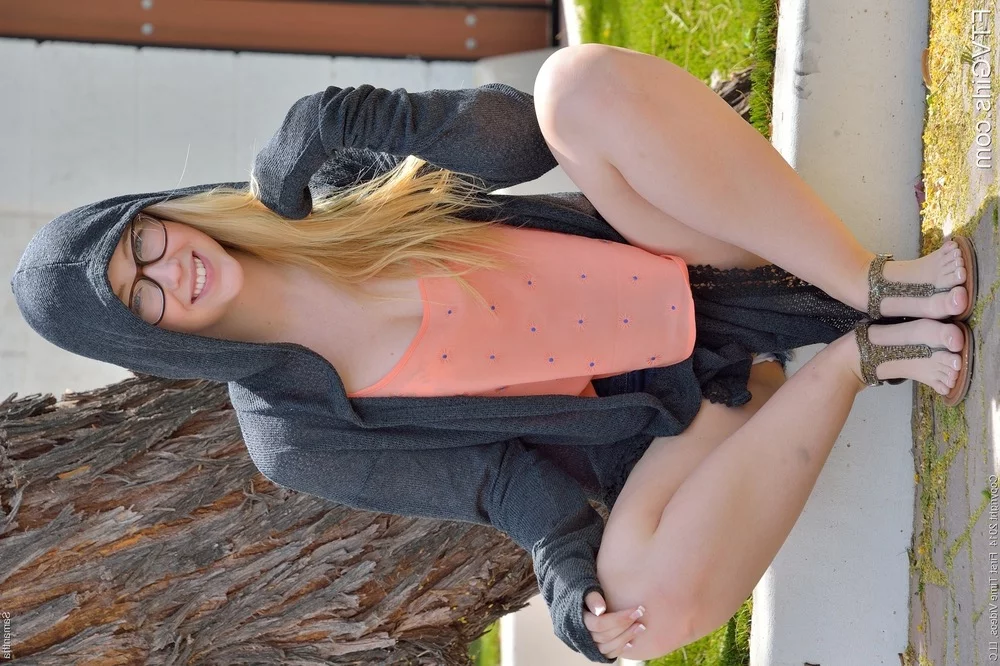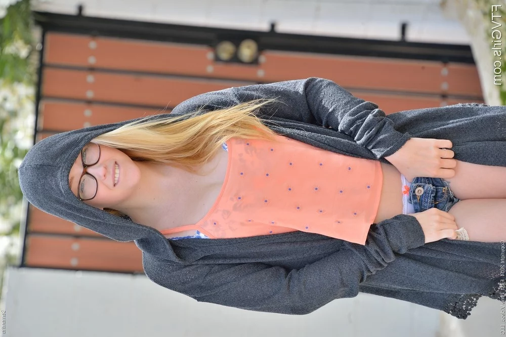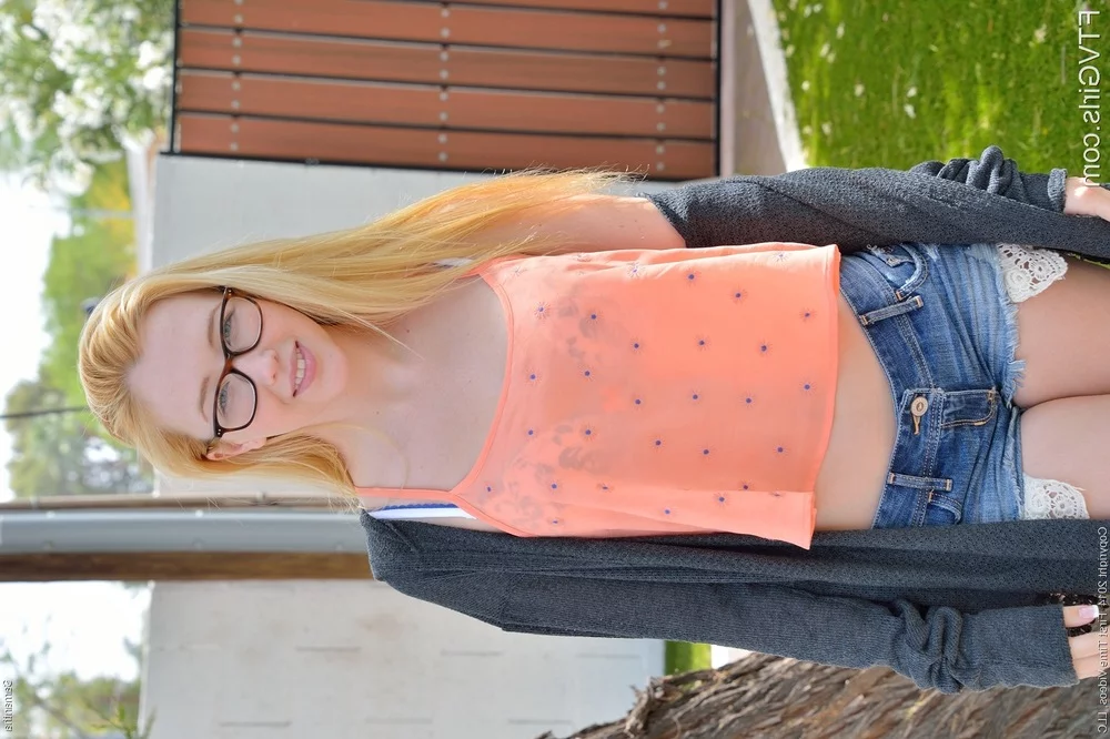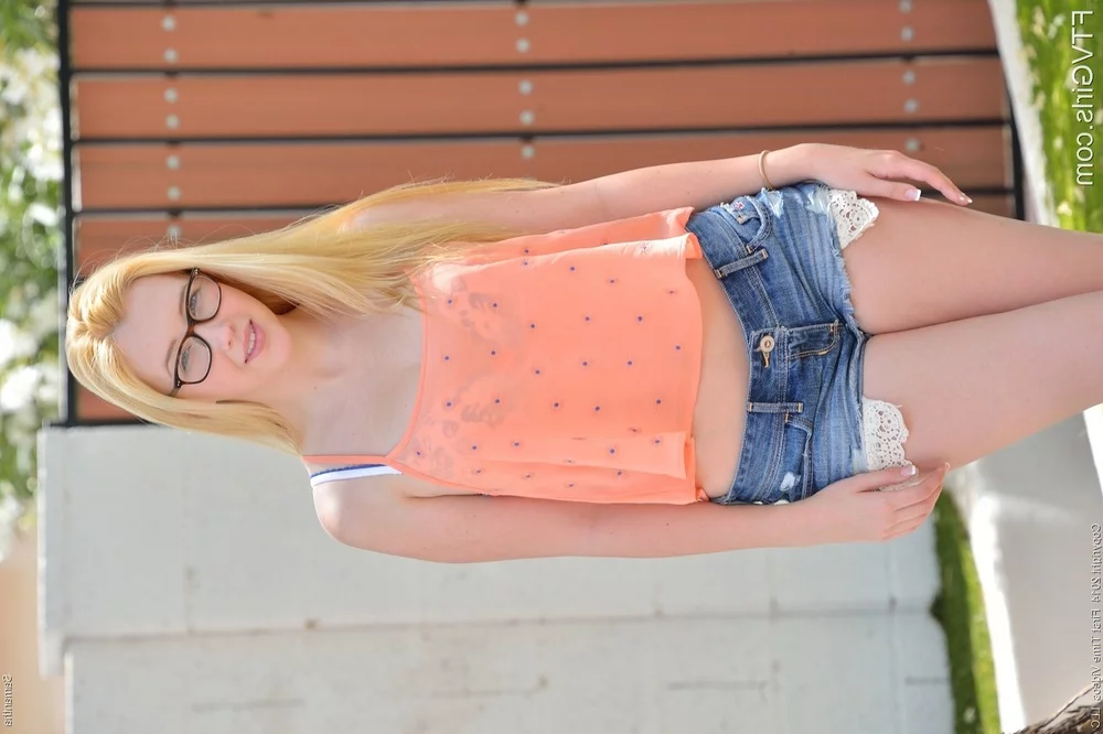 Занудная девушка-подросток пальчиками трахает свою возбужденную киску после того, как позирует обнаженной на заднем дворе
